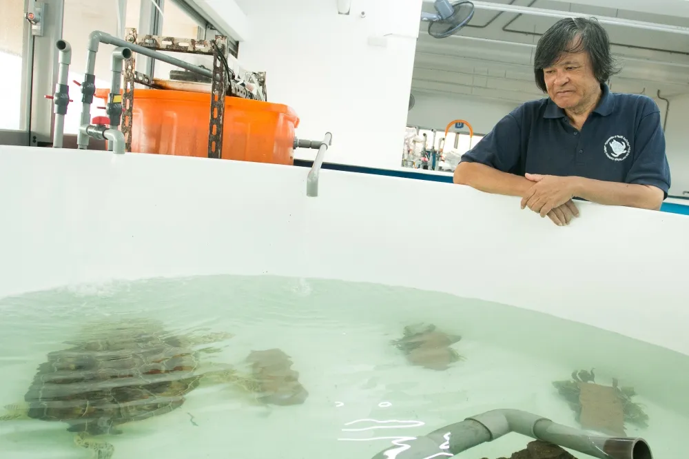 「我們在澎湖做海龜研究,最後做到八頭海龜,我的學生說,八頭海龜沒辦法當博士論文(數量太少了),於是他(放棄海龜)去做別的研究了。」